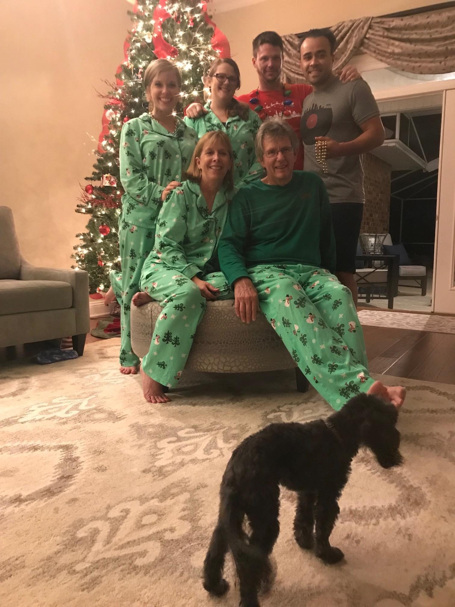 Christmas jammy family photo