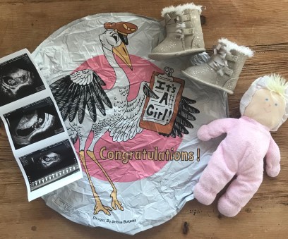 Here are some pictures from the first trimester including ways we told our parents, ultrasounds, a few of the many generous goodies/gifts from family and friends, and a lack of a baby bump (figured I needed to take at least one picture of me in the first trimester if I’m going to keep taking body pics).