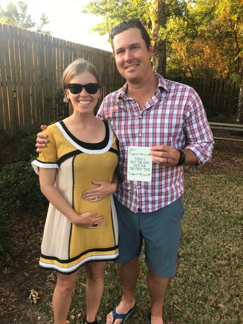 During week 20 Jeff was able to feel the baby kick for the first time. His eyes still light up the same every time he feels he move. It really is an unreal, incredible feeling. Also, now that it’s week 20 and we are HALFWAY should we start counting down?!
