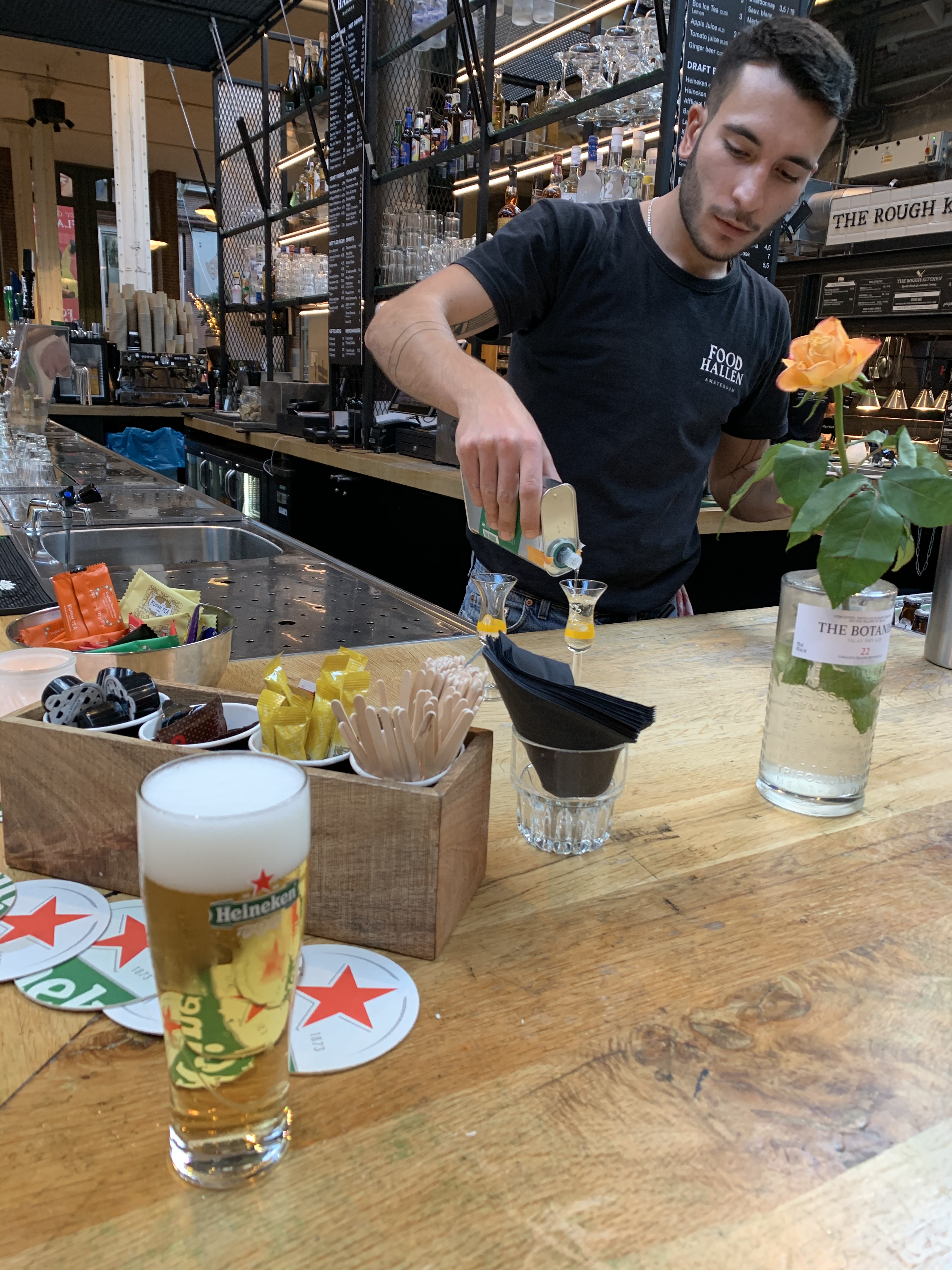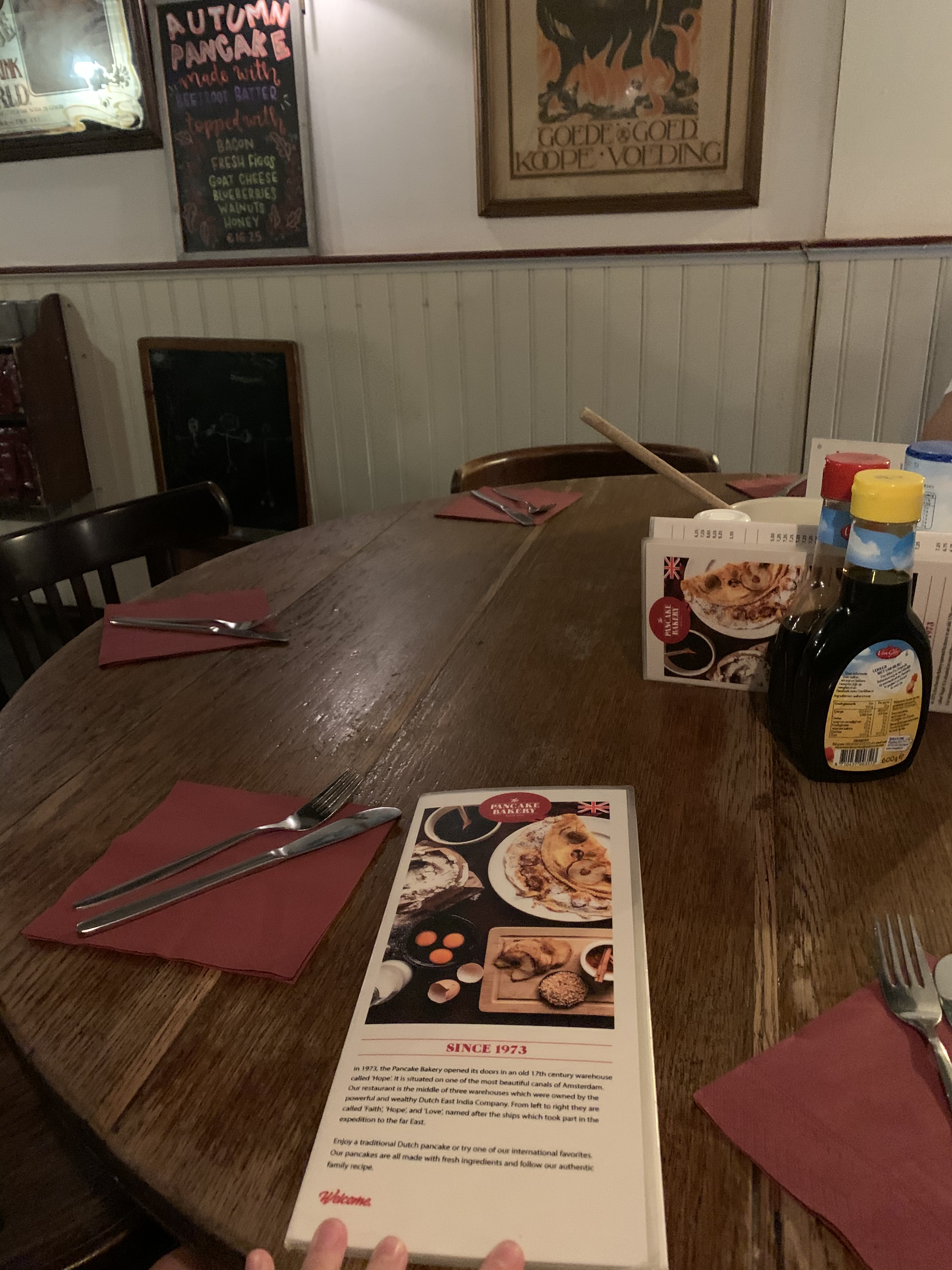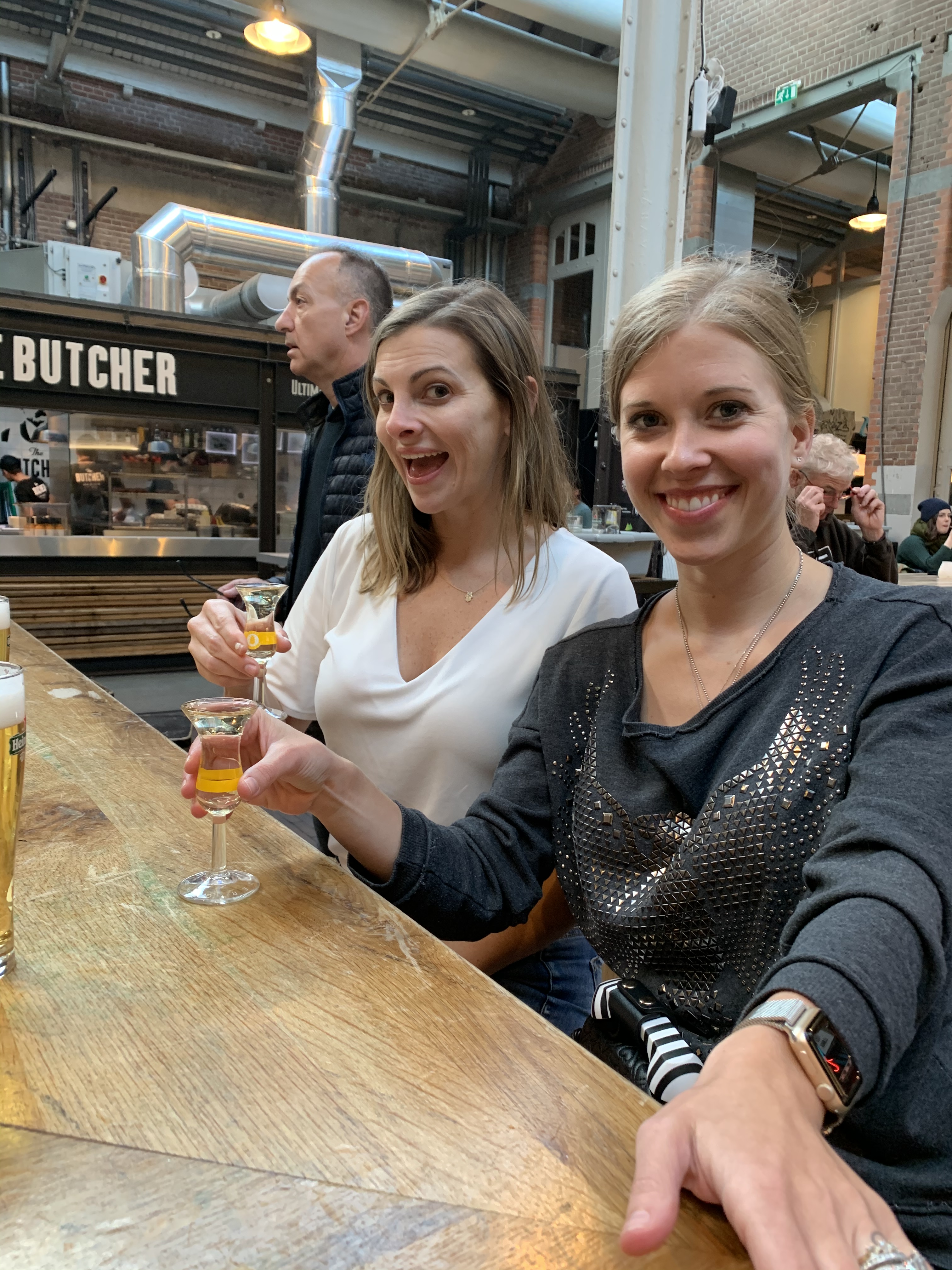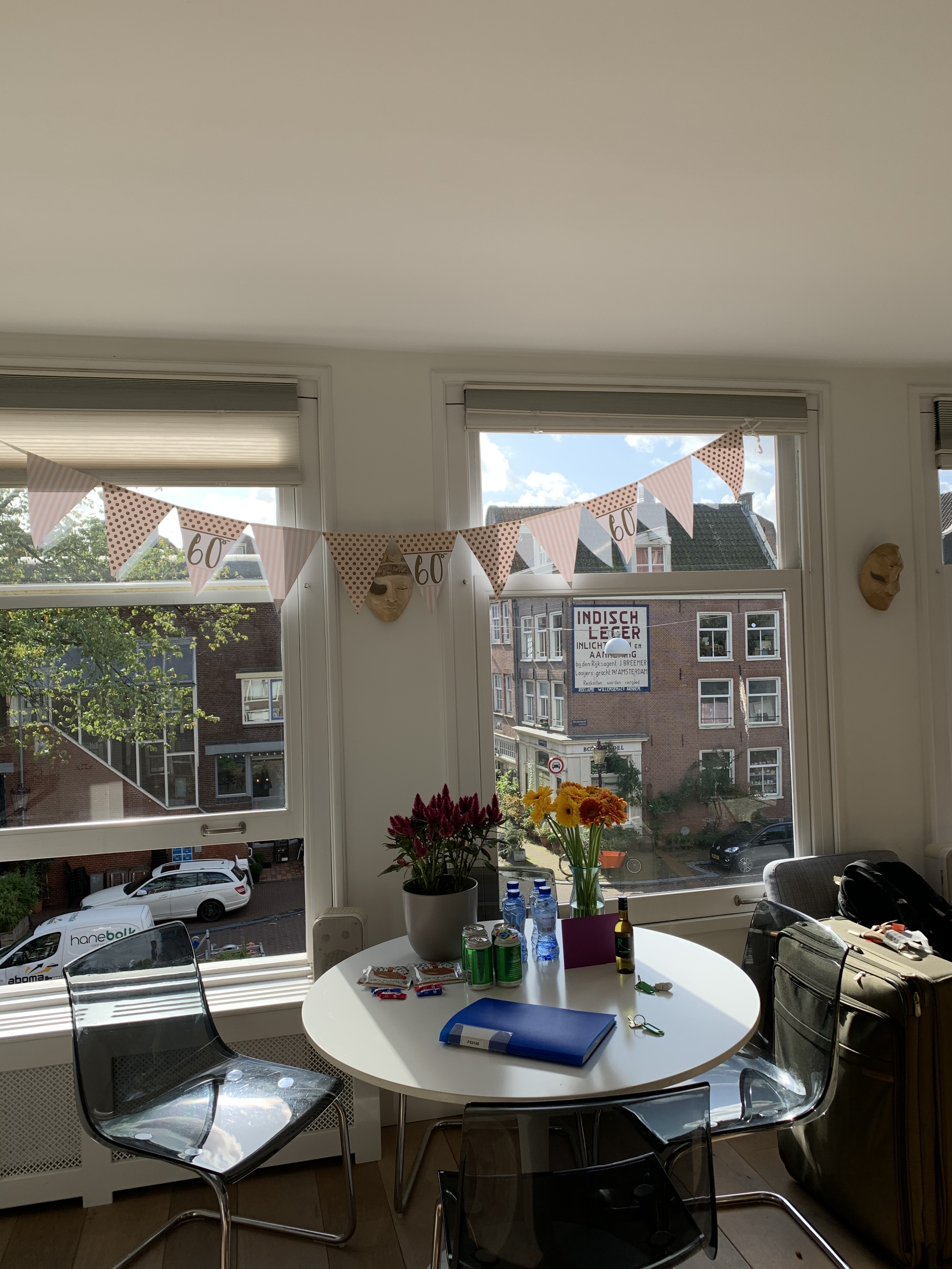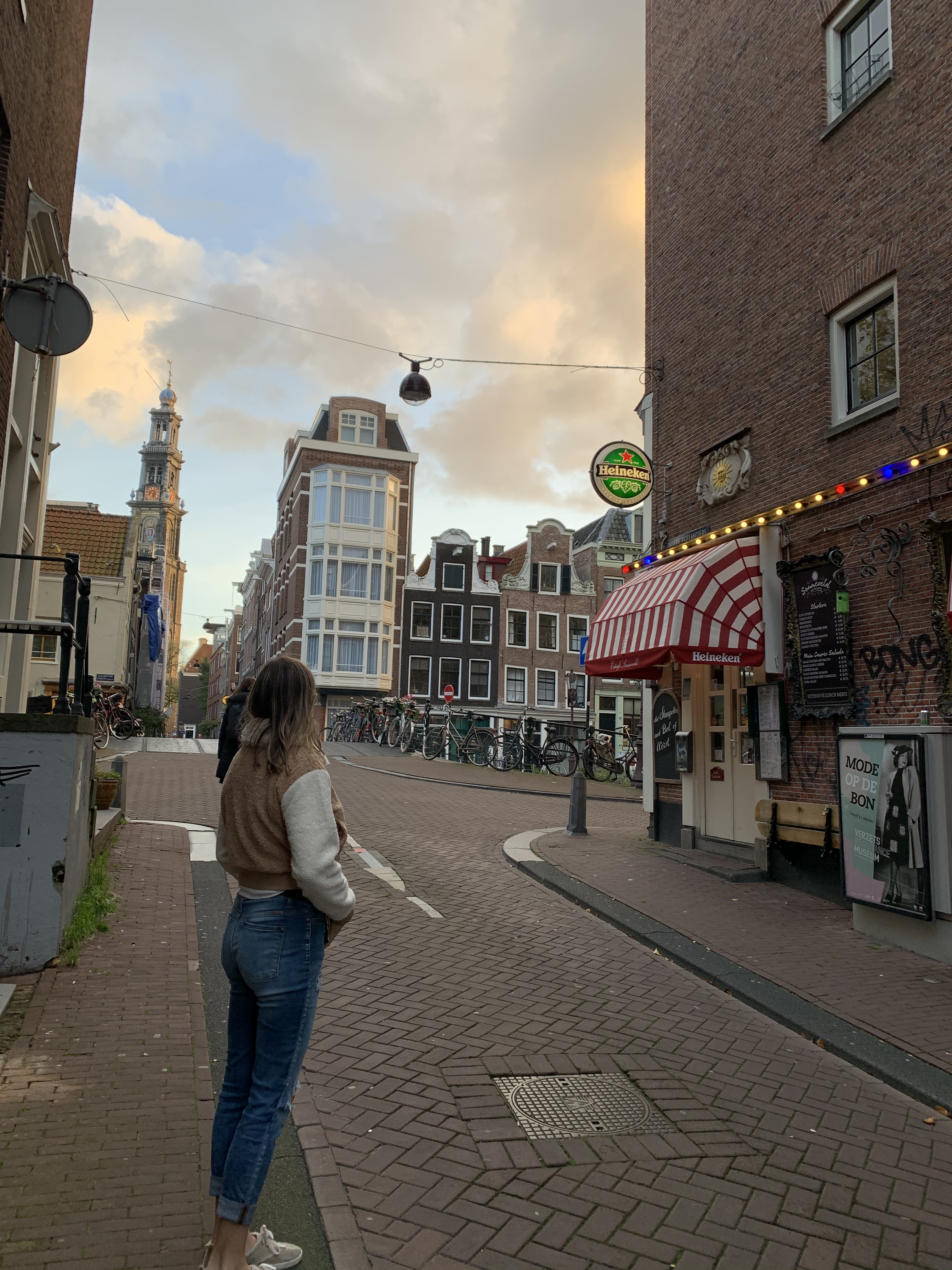 Delta Sky Lounge waiting for mom and Cathy.Our crew is ready to go!Love their itinerary so you know exactly what to expect.Our hosts decorated our Airbnb for the birthday and left us lots of little goodies!Our view in our Jordaan Airbnb.Pancake Bakery which came highly recommended. Their pancakes reminded me of crepes and American pancakes had a big baby.Here’s the history and I ordered the special which is on the wall (minus meat and cheese).Mini stroopwafel (classic Dutch treat) to accompany my espresso. Approaching our apartment (you can see the banner in our window).Uber + walking to buy me a new breast pump because even though I brought my electric converter, I didn’t think about the voltage and such sooooo it blew a fuse and broke. Pumps and Picasso.Picasso in the park (Vondelpark).Food Hallen which consisted of a bunch of different little spots with various food choices.We sat here and ordered a drink.Went with the traditional Heineken and gin (they are known for their gin). It tasted sweeter and smoother than ours but still not my cup of tea to just sip on (or shoot and chase with a beer). Various houseboats and canal scenery. Café SonneveldNight cap at a little local spot near our apartment, Café Lowietje. Here a local man introduced himself to us and invited us to check out the bar he owns (also nearby) on Saturday for Irish music, which we did and you will see pics of later.