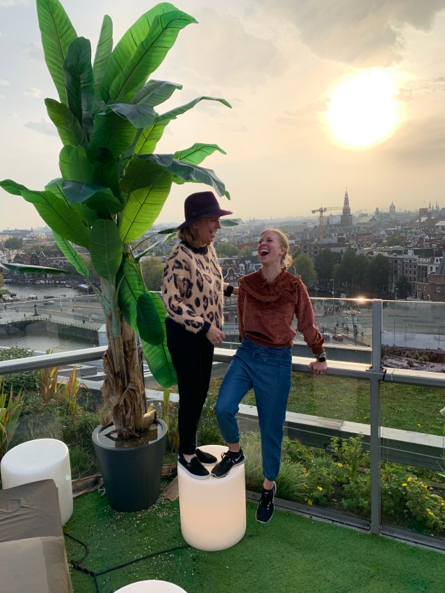 We went to Bloemenmarkt, the world’s only floating flower market (flower stalls sit on the Singel canal), for more gifts and to buy cheese to take home and then ventured to the largest daytime market in Europe, the Albert Cuyp Market, which has over 250 stands. Grabbed a drink and, what my mom had been wanting to try, herring (the Dutch are also known for their fried to pickled herring) and then grabbed two rickshaws up to the DoubleTree hotel to catch one of the best views of the city in their SkyLounge. We ended the night with an early dinner on one of the canals.