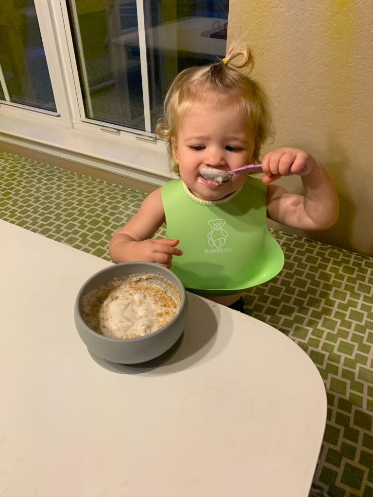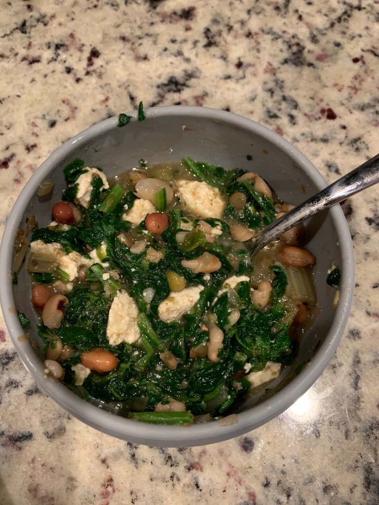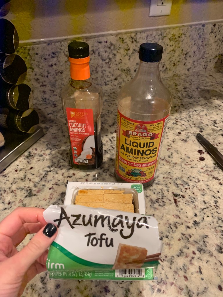 So if you’ve never tried aminos, do it! The coconut ones taste sweet, like, hence the name, coconut, and the Bragg’s taste like soy sauce but the way they’re produced releases amino acids so it’s a bit healthier than just using soy sauce or other seasonings. Regardless, they are just tasty. I’ll press tofu and then create a marinade. From there you can bake or fry in a pan or just eat over a salad. You also can skip the marinade and just add the tofu with the sauces to a stir fry, pictured below. Here’s the link for the coconut aminos and here’s the link for the Bragg aminos.Homemade soy yogurt made in the Instapot (seriously SO easy) with toasted wheat germ (reminds me of pie crust). Let me know if anyone wants the recipe for making the yogurt!Hummus loosely following the recipe on the back of the tahini jar.This doesn’t look too appealing but I made a 15 bean soup in the Instapot and added tofu and spinach and it was a hit. Basically any soups I’ve tried in the Instapot have worked great.Quinoa and barley with ‘sauce’, aka tofu garlic dressing from Ever’man’s in Pensacola. Both P and her little bud Brooks are hooked on that sauce. And so am I. Up next I’m going to attempt to make it.Tempeh which you can fry up or serve in strips. People add to mock BLT sandwiches, I’ve bake smoke tempeh in cubes like this and served with a cranberry sauce, or for what I did on that day was just fry with Everything But the Bagel seasoning. Order that seasoning here or make your own.Did you know there was such a thing as healthy ramen? Well now you know…and here’s the link for this oldie but goodie new take on a classic comfort food.Pfeiffer enjoying her ramen plus tofu and edamame and squash. Only suggestion would be to add some more veggies and/or tofu to the ramen to make it a heartier meal.Shakeology mug cakes.
