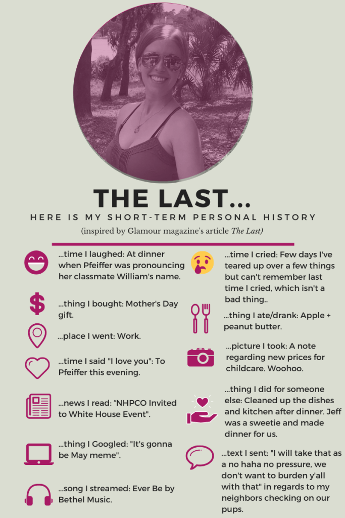 It’s gonna be May (in my NSYNC voice)…so here’s my ‘lasts’ of April. What are your lasts?Like Loading... Related