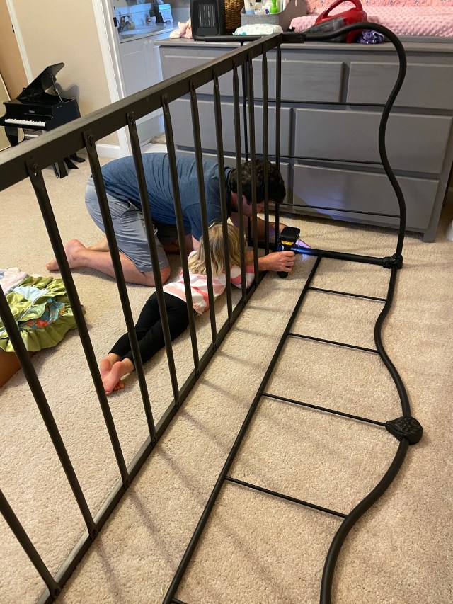 My dad and his wife, Jinny, have been in town from Washington and have been helping us prep the baby’s room. Took us about 4 hours but we put the dresser together and Jeff and I switched the crib to the new nursery and Pfeiffer got herself a big girl bed. Lots of decorating still needs to be done but we are getting some large tasks done and it feels good!