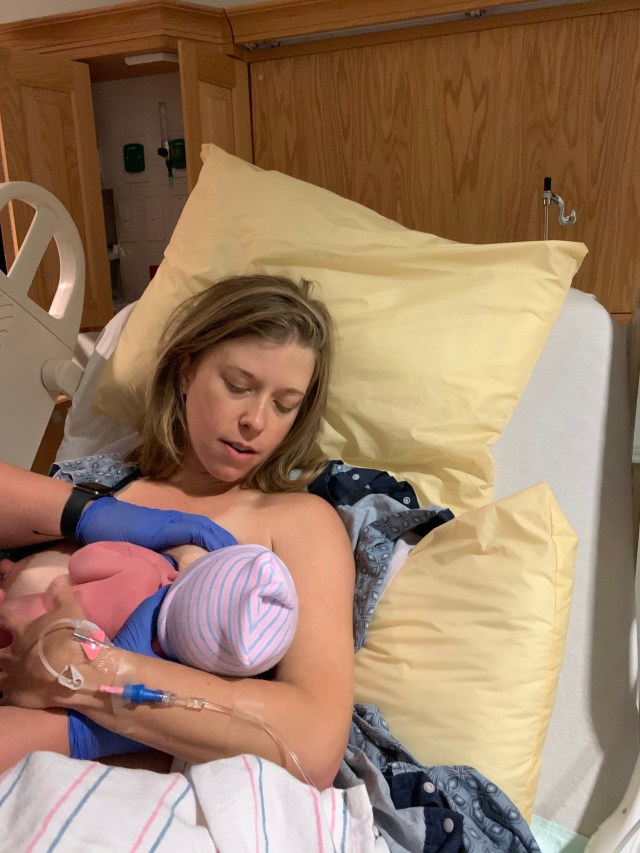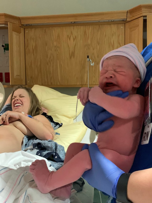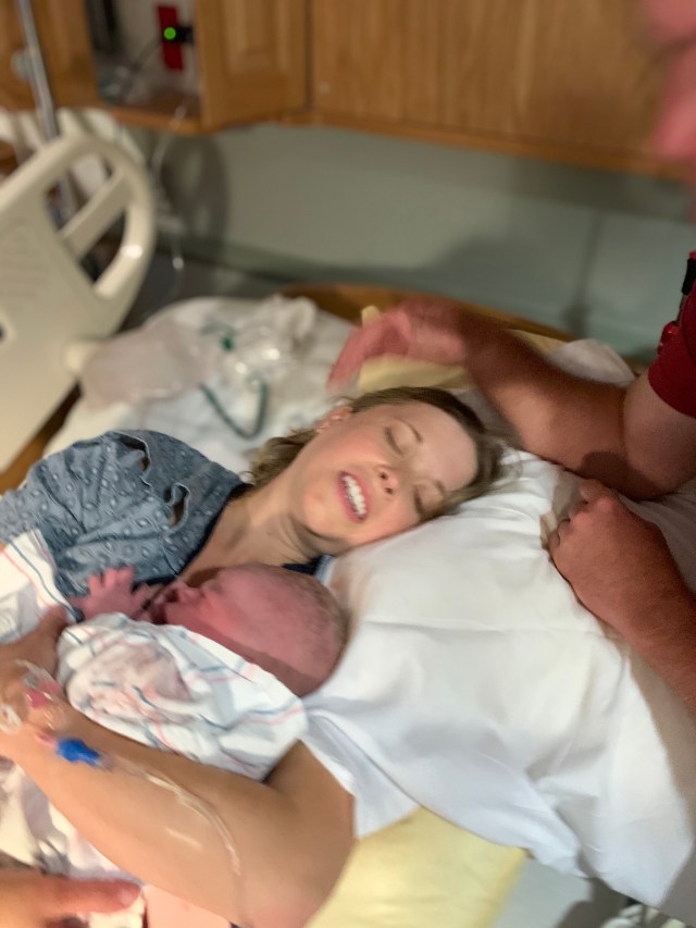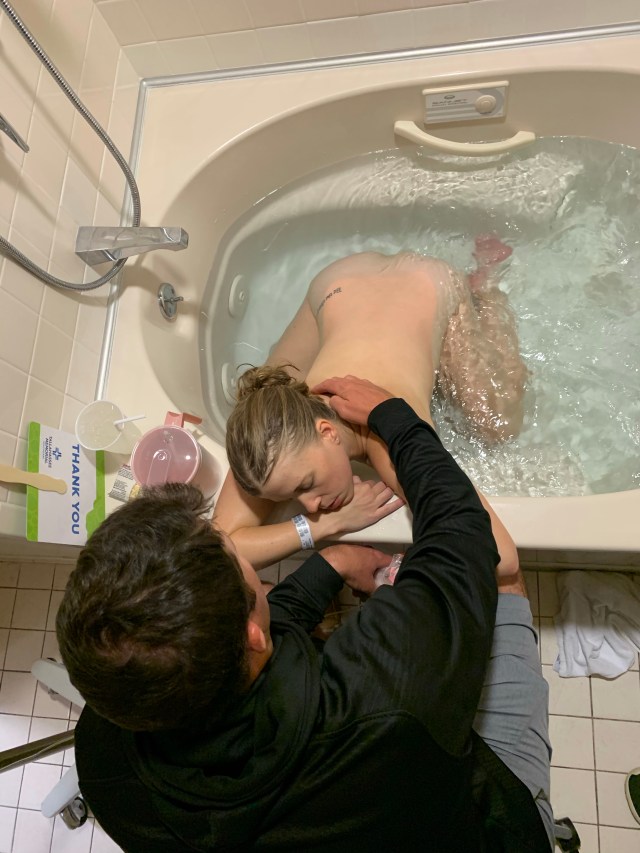 - Okay, so out of the tub and laboring on and off the hospital bed. About 30 minutes into doing this, they decided to hook me up to oxygen to ensure the baby was good. From staying very active throughout my pregnancy, my cardiovascular system felt stronger than it maybe ever has (along with my overall body feeling strong) and I was I was trying my hardest for deep breaths through the physically demanding process but I didn’t mind being on the oxygen. It sort of was distracting or helpful in some way. Meanwhile, Jeff and Rocky are tag teaming pain relief for me. Mostly pressing on my back and hips to apply counter pressure from the hell I was enduring. Rocky later told me she never has had to use so more strength/force on anyone but the harder they pressed, the more relief it provided or at least served as a distraction. About 45 minutes out of the tub, when I was continuing to hate my life, doc came in and cautiously suggested that they could break my water. I remember thinking WTH haven’t they said this already? Jeff told me I responded by saying, “Oh f*ck yes.” I don’t remember cursing so strongly but the medical team is use to anything and everything during labor and delivery. So that happens and my contractions continue to grow stronger and stronger at which point I’m starting to have a harder time with my breathing and I’m making the most guttural noises to try to get through the pain. I recall doing that when I was in labor with Pfeiffer but Jeff said these were noises he had never heard me or anyone else make. I don’t know where these noises come from. I’m not sure I could replicate them again if I tried. I’m starting to feel like I have to push and tell the team I don’t know what I’m going to do if I can’t push soon. Begging them, saying something along the lines of “please let it be time”. As if they could grant me that wish. I get checked and I’m close but not quite there. I insisted I needed to and I felt the urge but even though I wanted to, I knew that I didn’t have the feeling of an uncontrollable need to push (that’s when it’s go time). At this point the team saw me push something else out and helped me clean up. I remember before having P, pooping myself was one of my biggest concerns. Now, granted, I never want my husband to witness that but the shame and embarrassment in the moment goes out the window. You just have to do whatever you have to do to get through it. And if shit happens, it happens. Hate it but it kinda just is what it is. Pain relief from Jeff and Rocky continues with counter pressure and cold washcloths and then finally, almost exactly an hour after my water breaking, they checked me and it was go time. Doc barely had time to get into the room. I pushed for a few times and baby was born. The pushing to me is the ‘best’ part of the process because at least you can channel your pain into something that feels productive instead of just riding it out. (I know each contraction gets the baby closer to coming out so they’re all productive but you know what I mean.)