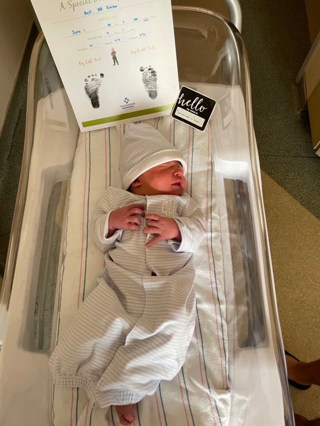 - But he’s here! We did it (and without any pain meds or Pitocin or intense medical interventions like I wanted). At 1 AM on June 1st he joined us (his sister joined us at 1:11 PM so I’m thinking 1 is a lucky number for us). He was 8 pounds 1.5 ounces and 20 inches long. Jeff cut the cord, all looked good, and he did finally latch and get his first meal. I thanked our entire team for all their help. My doc was great. Our nurse who I felt was in there the entire time, even though we came to find out that she did have other patients, was a rock star. Rocky was amazing. And I just wanted to cuddle up to Jeff for being my rock in it all. I was so thankful and grateful to have this incredible group of people helping (in fact, during our entire stay at Tallahassee Memorial Hospital, we would have the greatest staff helping). And of course, I was thanking God for allowing me to get through it and for me and the baby to be healthy and for it all to be over. Lots and lots of time spent in prayer before, during, and after all this. Meanwhile though, my entire body was shaking profusely. Jeff asked if it was because I was cold. Nope. It was just everything. Adrenaline. Exhaustion. The emotional toll I just went though. We said goodbye to Rocky to let her get some sleep (I can’t imagine assisting for back to back births like she did for me and my sis-in-law). A few hours later we were able to get settled into the room we’d stay in for the next few days. I kept feeling as if I was dreaming and I’d wake up and have to endure that entire process again. It didn’t feel real and I was feeling a PTSD of sorts imaging I’d have to go through it again. I’d mentally calm myself down and remember that Shep was here and I will never go through that again. That PTSD continued for a handful of days and I definitely wasn’t ready to talk about the entire process right away. Maybe part of the reason why I’m finally writing this at 6 week postpartum.