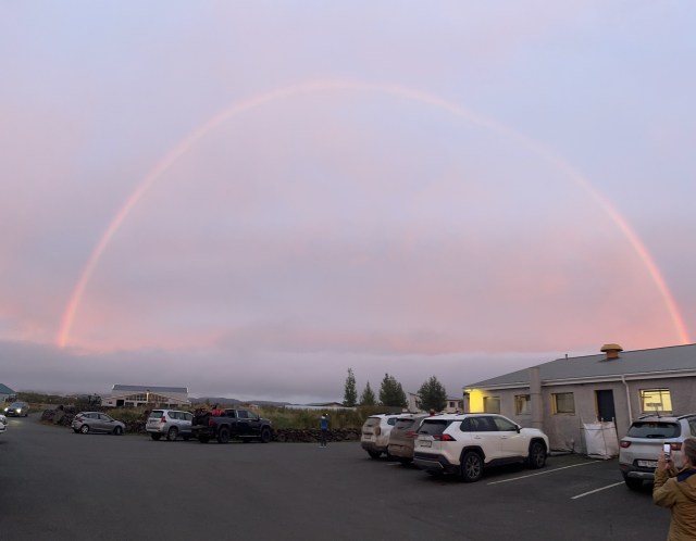 Day 3: On day three we started our trek up the east coast to the north seeing more waterfalls, geothermal areas, and the most incredibly perfect rainbow outside this farm to table place we went to dinner. We camped out in Myvatn.